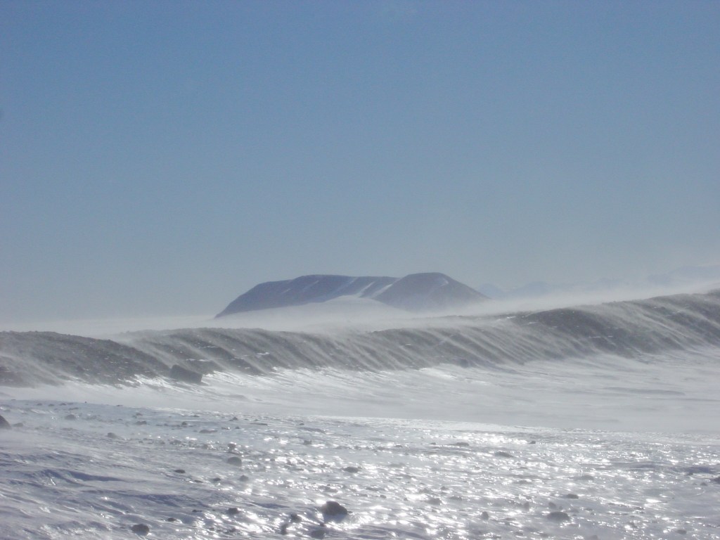Photograph of the snow blowing at 90 km/hr at Lone Wolf Nunatak, Antarctica, 2004, original in private collection.