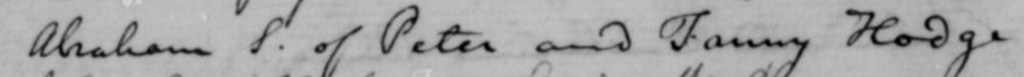 Excerpt for the baptism of Abraham Hodge, 1801.