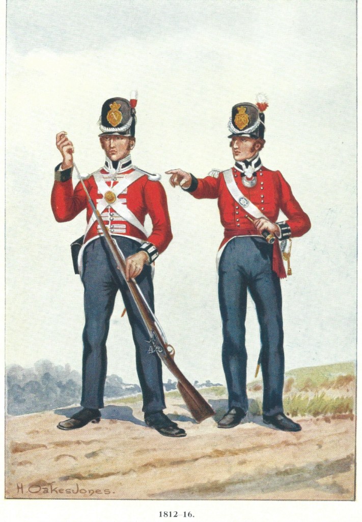 Somerset Militia uniforms of 1812-1816, from W.J.W. Kerr, Records of the 1st Somerset Militia (3rd Bn. Somerset L.I.), Aldershot, Gale & Polden, 1930. Image in the public domain.