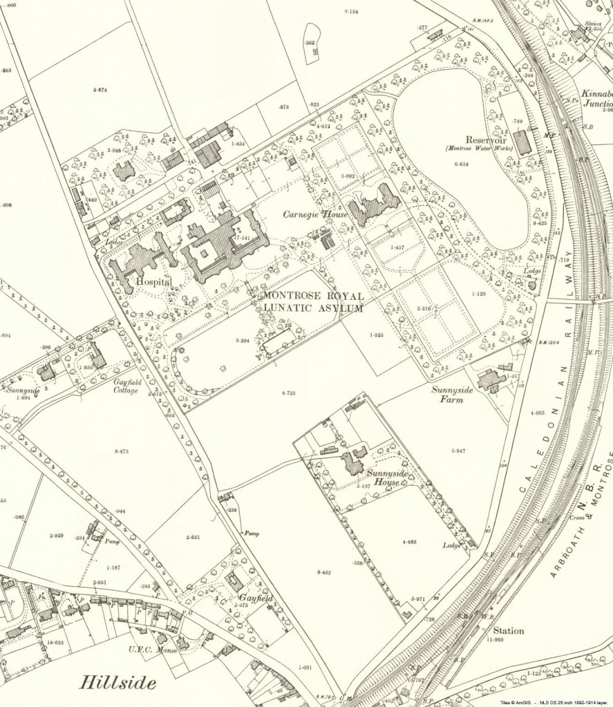 Montrose Lunatic Asylum, Infirmary & Dispensary was established by Susan Carnegie in Montrose, Scotland, opening on 6 May 1782. Reflecting changing attitudes it went by various names over the years, including Sunnyside Royal Asylum, and later Sunnyside Royal Hospital. My 4x great-grandfather worked as Sunnyside’s gardener, and a 2x great-granduncle was a patient.