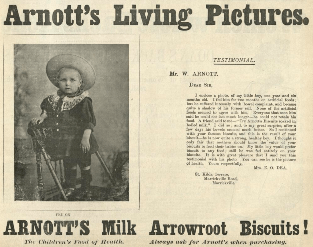 Growing up on Arnott’s Milk Arrowroot biscuits, Now and Then, https://lynnwalsh.wordpress.com/tag/arnotts-living-pictures/, accessed 4 February 2026.
